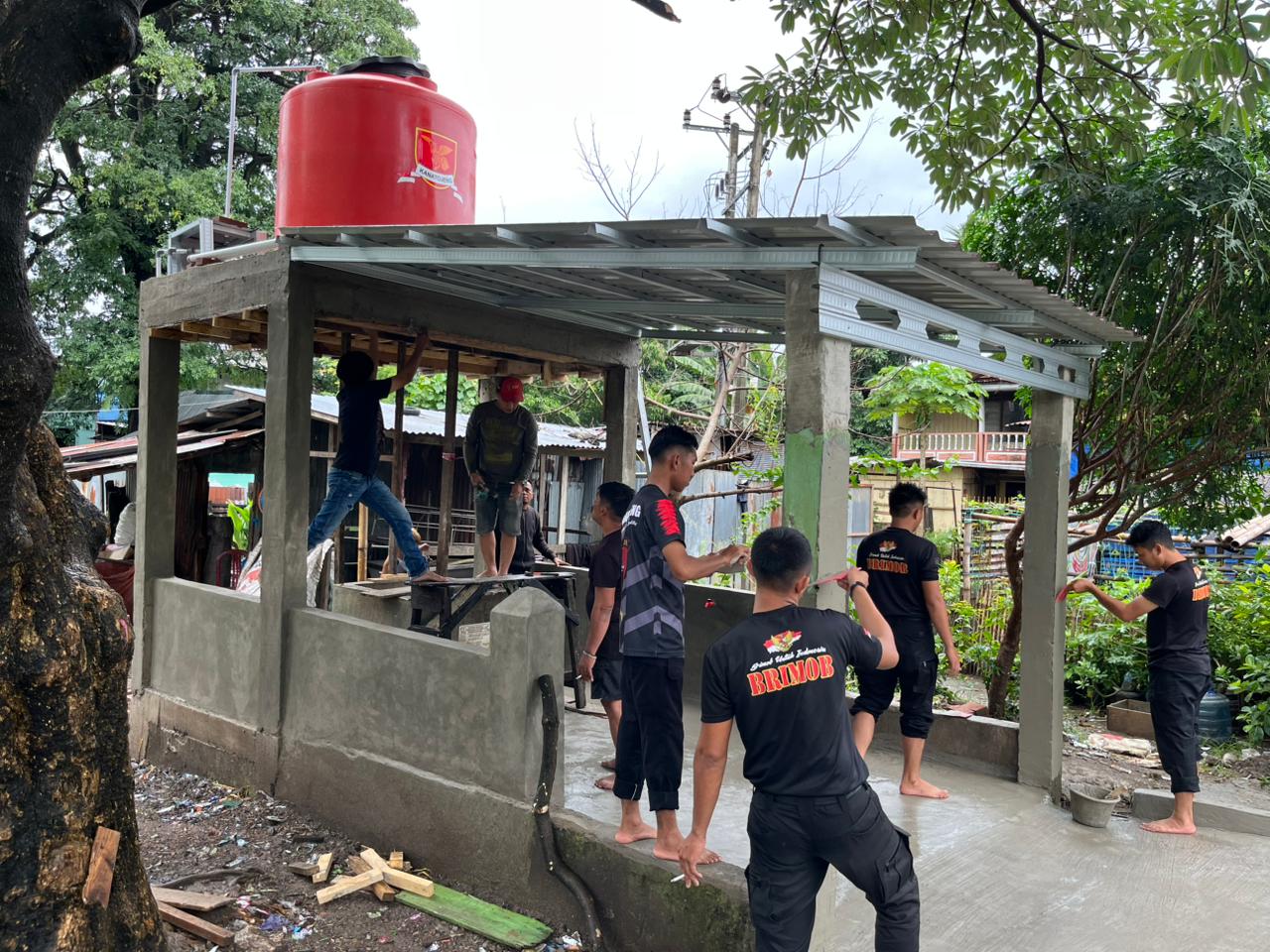 Proses renovasi melibatkan personel Brimob dan warga sekitar yang bekerja secara gotong royong, sehingga pekerjaan berjalan lancar dan sesuai rencana.