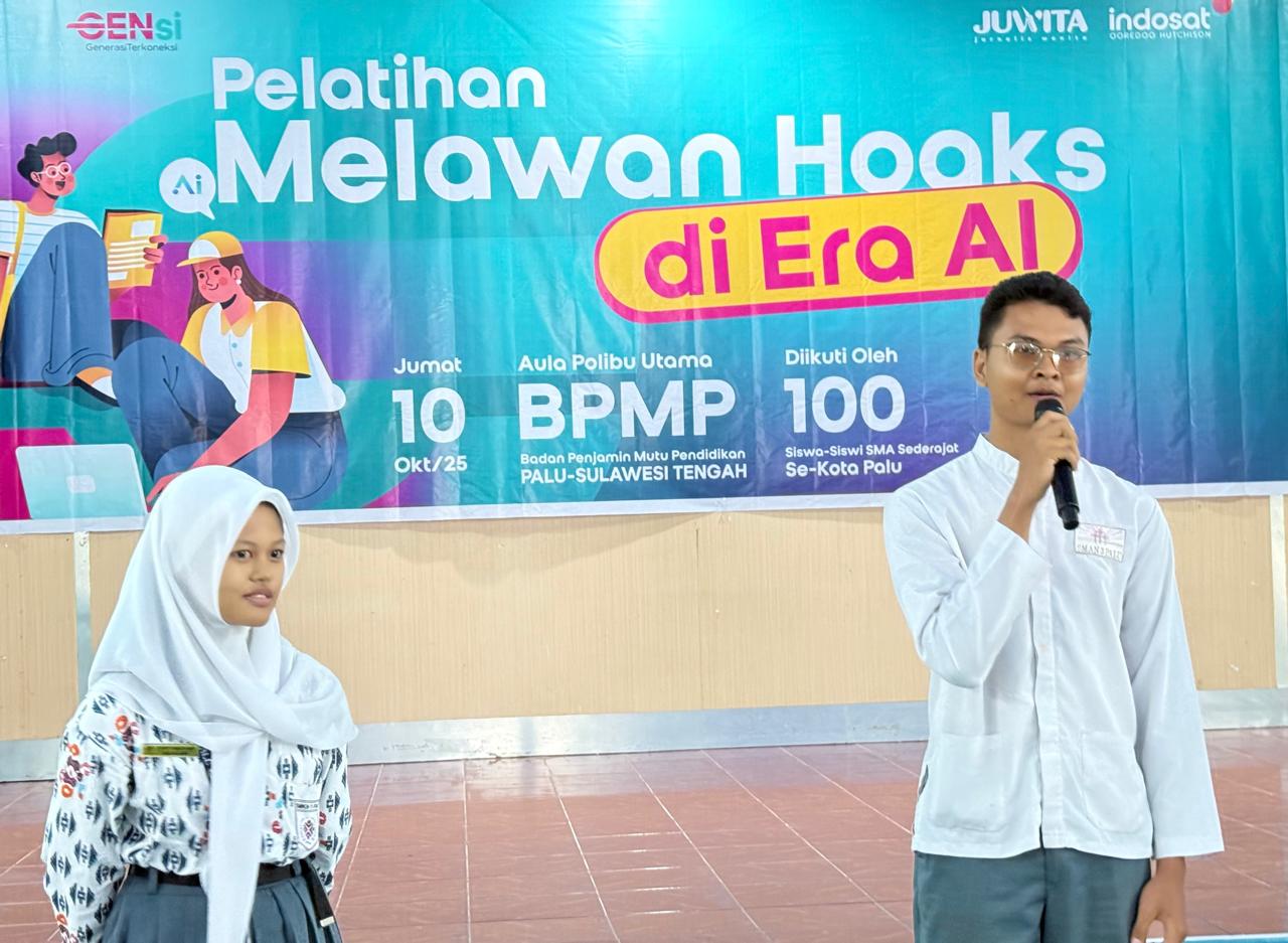 TOPsul.bPalu, 12 Oktober 2025 – Indosat Ooredoo Hutchison (IOH) bersama Forum Jurnalis Wanita Palu (JUWITA) terus mendorong peningkatan literasi digital di kalangan generasi muda. Melalui program Generasi Terkoneksi (GenSi) bertema “Melawan Hoaks di Era AI”, kedua pihak menggelar edukasi digital di Aula Palubu Utama BPMP Kota Palu, Jumat (10/10/2025).