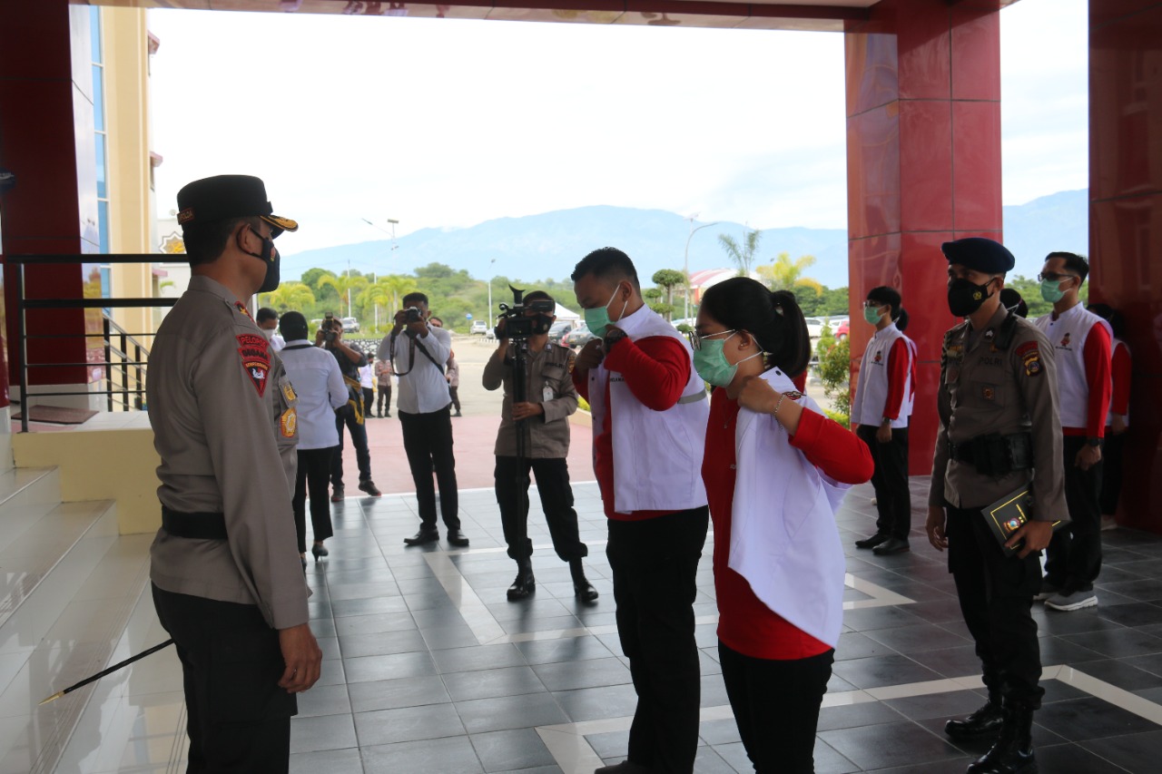 Terpisah Kabid Humas Polda Sulteng Kombes Pol Didik Supranoto mengatakan, dalam upacara tersebut sebanyak 60 relawan yang berasal dari dari universitas tadulako, unisa palu, stikes bala keselamatan palu, stikes indonesia jaya palu, stikes widya nusantara palu dan poltekes kemenkes palu.